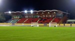 The stadium is a fairly typical athletics affair, albeit with a velodrome around the running track making the pitch extremely distant. This may have something to do with why 10 years ago Peppard FC had to vacate as the pitch was found to be too narrow! I’d wondered how this had been worked around, the answer is that two strips of astroturf have been placed on either side of the pitch. Therefore the grass forms the pitch up to each touchline, and the linesmen run on the astroturf! It’s a bit “Heath Robinson” but it does work.
