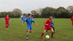 The team it seems will, in time, mature nicely. Noticeably younger than their visitors, they took a few minutes to settle but soon managed to play excellent, passing football on a very wet pitch. Both sides were conspicuous for playing the game the right way, passing and moving, supported from the sidelines, again the right way, by a small bunch of Dads and officials. Tips and encouragement very much in evidence, this was an easy game to watch and I’d imagine to both play and officiate at.