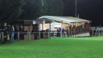 The ground is a mish-mash of facilities loved by hoppers and hated by ground graders. The changing room block, loos, and cafe are housed in what looks like a 1950’s style Butlins chalet block, and to add to the effect when an announcement is made over the PA, there’s “Bing Bong” sound first. You start to wonder where Ted Bovis and Gladys Pugh are hiding! There’s a bench seated wooden stand, and between the dugouts a small covered terrace. The bottom end is inaccessible to spectators.
