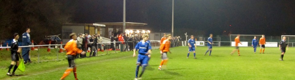 To clock up a serious number of grounds its important for a hopper to have a circle of support. This evening’s game was a case in point. The original idea was to leave work in Banbury at 5 and head north to Stafford Town FC. Stafford resident Chris Bedford sent me a text telling me firstly that it was -5C and later that the game was off. A phone call from Fareham based Splodge told me to head to Portchester, ” Don’t worry, they’re the other side of the creek, it’ll be on!” He was right, on a night when many games were postponed and others abandoned, including poor Splodge’s at Oxford City.