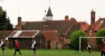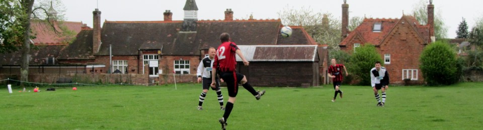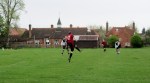The Long Crendon Rec’ is one of those places I’d driven past far too many times not to have seen a game there. It’s basic, a typical village sportsfield, shared with cricket, the changing room block at one end. What makes it special is the surroundings, the trees, the thatched roofs, even the pub gate backing on to the ground. The local school used to use this place as its playing field, that became a village centre, it did seem strange to see gaming machines in something still so scholastic!