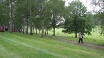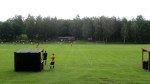 Råbyborgen is a typical Swedish village sportsground. With football being a summer sport there’s not much in the way of cover, but there’s plenty of seating and of course trees come in abundance! It was a setting with no lack of the “Wow” factor, and the locals were pleased to see their normal crowd augmented for this fixture. With the weather at best changeable, the clubhouse overhang was made use of, the rain ponchos thoughtfully provided in the hoppers’ goodie bags were opened, so all stayed dry. At least most of us did!