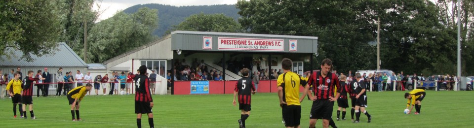 The small town of Presteigne is close to the border with England, and these days is very much a gateway to the Principality. Its name in Welsh is Llanandras which gives the ground its name, and the most notable building is the local church of St Andrew, which contains Anglo-Saxon elements. It’s the church that spawned the club, and gives it its suffix. Land owned by Captain Lewis RN was used to hold first Italian and then German POW’s during the Second World War and this land is now Llanandras Park.