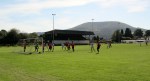 The Pen-y-pound stadium remains a crumbling reminder of past glories. The main stand is closed and boarded up, and I suspect the only reason its still standing is due the local rifle club using the building underneath. There’s a covered stand behind one goal which is well-maintained, as is the clubhosue at the same end. In a corner of the ground, the groundwork is taking place for a 3G training pitch, for both club and community use.