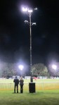 The Ewart Recreation Ground is very much a cricket ground that hosts football. There are, would you believe 9 stands, all one side of the ground, and the whole lot looks like it’s removed for the cricket season. That includes the floodlights, which are a “Heath Robinson” affair, made out of what looked like water pipes. They look unusual, but they do the job.