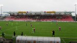 The surroundings weren’t half as boring as a new-build ground can be. I liked the wooden roof on the main stand, and the quite bizarre hospitality area in one corner. The two sets of fans did their best to create an atmosphere but the empty spaces made that aim difficult.