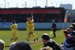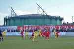 Hopefully it didn’t detract from what was clearly the game of the hop. It was one of those games you couldn’t take your eyes off, not even for a minute. The visitors opened the scoring, Paddy Miller thumping home across home keeper Mark Wilberforce. The lead lasted less than a minute, as Chris Batchelor squared to Scott Phillips who finished well. The sides were keeping a frantic pace, and Nathan Cook did well to meet a throw in to head Brid’ into the lead. That in turn was levelled by Athletic as Wilberforce saved an effort from Plummer, but the ball spooned up enabling Jimmy Beadle to head in from close range.