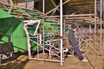 The ground is quirky to put it mildy. There’s enough overhang on the clubhouse room to house enough seats to keep the ground graders happy, but these were supplemented by an odd looking portable stand bought on Ebay! Unfortunately the welds turned out to be rather weak, so the edifice is shrouded in scaffolding until remedial action can be taken. The great advantage of the ground though is the glass-fronted bar area. It means that on a freezing cold evening many tired hoppers could watch their 8th game of the weekend in the warm.