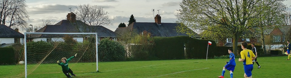 Easington Rec’ or Park, if you believe the notice at the entrance is a benefit of that planning, a wide expanse of green, with two football pitches, a children’s play area, and a changing room denuded of its windows. On a warm evening it was a pleasure to spend a couple of hours in the company of the Banbury and Lord Jersey League.