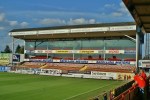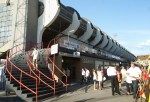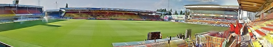 Achter de Kazerne means “Behind the Barracks,” although the army camp has long since gone. The ground is a wonderful hotchpotch of stands none of which fits in with the other. The main stand has a mixture of seats and benches and has a curious curve up to the roof. There’s a large covered terrace complete with loudspeakers, hoisted up the stanchions flag-pole style. To its right, behind the goal is a narrow-double decked affair, a temporary measure built in the 1980’s! Behind the other goal is an oddity, a huge building hosting the club offices and a triple-deck stand. The top two decks are behind glass, for the type of corporate client who desires the sanitized “Soccer Experience,” and these seats were the only part of the ground that wasn’t full! It seemed a shame not to see the capacity of 13,213 reached.