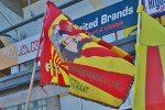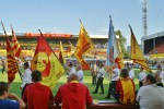 The “Risk game” status of the fixture meant that there were a multiplicity of stewards, watching nervously. On entering each stand they checked each and every ticket, even if a spectator was simply returning with a beer, and plenty .25l beakers of Maes lager were being sold.