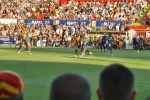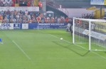 The game was as frantic as the atmosphere was hot. The two sides seemed to be playing faster than their capabilities and play frequently broke down. It could easily have finished 0-0 but the visitors scored two identical goals to win the game. In each case a breakaway beat the offside trap and faced a one-on-one with the keeper. In keeping with a top-flight game the respective forward scored both times.