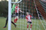 The game lived up to the personalities, even of it did turn out to be a massive disappointment for the hosts. They took the lead too, Liam Magee’s looping header from a corner wrong-footing Luke Strickland in the Overton goal and dropping agonizingly under the crossbar. Common could and probably should have led by more at half-time, a mixture of goalkeeping heroics and the woodwork kept the score at 1-0.