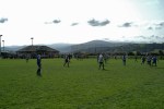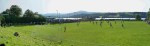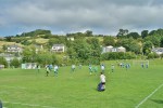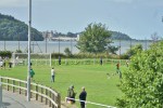 For the delights of Cae Ffwt aren’t restricted to just the facilities. The view of the Conwy estuary is a delight, and Snowdonia behind that just takes the breath away. There was the bonus of the grass bank beyond the far goal allowing hoppers on their 7th game to relax, catch a little sunshine and take in all that the view could offer. Of course there’s always one who has to take things a little too far. He decided to strip down to a rather insubstantial pair of shorts and was made to pay when a stray shot hit a wasps’ nest behind him…