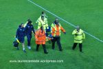 “We have an incident where Alfie Potter is lying on the floor with his leg in a brace and he’s asking the referee about the challenge and the referee is swearing at him, telling him to shut up and warning him he will send him off if he doesn’t.