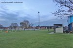 The football club play at the back of Hayling College, and that location is the cause of many of the club’s problems. The ground is fundamentally a college’s playing field, and that fact sits uncomfortably with ground grading regulations. The floodlights are present, but the requisite seats and cover are so far from the pitch as to be virtually pointless as the college requires there to be space for a running track to be marked around the pitch for the summer. To add insult to injury, the grille locked to the front of the stand remained in situ throughout the game too. Is the ground enclosed? By the letter of the law, yes as there’s a gate where the club can collect admission, but there’s a lot of space beyond the pitch….
