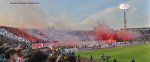 I was in place over an hour before kick-off and even then the atmosphere was crackling as both sets of fans supported their team and insulted the opposition. The Delije fans who bought tickets for the Eastern Tribune scales the fences to join their comrades in the North, before setting off flares, and producing a huge tank banner, then a balloon display as the teams came out. Not to be out-done the Grobari created a cacophony at the southern end, and flew stolen Delije banners upside-down before burning them. Some fans even climbed on top of the huge video-screen to insult the Red Star fans in semaphore!