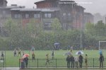 Mid-way through the first half the rain was so hard it sounded like hail on the stand’s roof, and the referee couldn’t see though it. An abandonment looked possible, but the weather relented for the second half. A restorative tea from the café helped, and the hosts took control of the game and were deserved winners. It was a good game to watch, not least for the referee, he’d had the misfortune to have to record all the goalscorers in a 32-0 demolition the previous week. That, I reflected afterwards would have been far better suited to the pitch the other side of the stand!