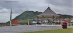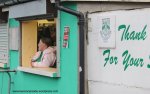 From there we battled Friday night traffic to head just south of the capital to Bray. It’s a seaside resort, that did rather well out of British post-war rationing. Ireland had been neutral and had not rationed, so the chance to escape the coupons for a week proved popular! The Carlisle Grounds is situated just off the seafront, and under the railway bridge. It’s a hotch-potch of terracing, seats bolted on former steps, and a canvas affair replacing the barrel-roofed stand that used to provide the cover. There’s an interesting little grass bank behind one goal. It was roped off and guarded, apparently it’s not to the FAI’s liking.