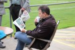 The scaffold was handy for us, providing shelter from a shower as we set up the tables for programme pack distribution and sales of Welsh and North Berks hop tickets. It was very much the day for groundhop organisers, Beds hop organiser Craig Dabbs had his tickets ready so we found him a table and chair so he could sell easily, and Notts hop organiser Rob Hornby had his charity programme stall in place by the pay booth. When Northern hop organiser Harvey Harris turned up for a chat, and talk about the Scottish hop next March, I suspect it was the most groundhop organisers that have ever been in the same place at the same time! If only Phil Hiscox (South West Peninsula) hadn’t have been at Fareham, and Tony Incenzo (Middlesex) at QPR we’d have had the full set!
