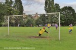 For all that history my number one concern when I reached the end of Butts Lane was whether the game would take place! Despite the summery weather the near goalmouth was being swept to remove the water from a deep puddle. I’ve seen less cause a postponement, but they don’t worry about trifles in the North Gloucestershire League, and the wet patch caused no issues to the hosts who brushed aside their visitors easily.