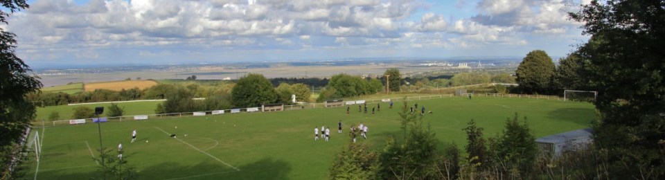 With the football pitch being cut into the hill above the cricket pitch, with in turn the cricket being situated above the main A55 the views are spectacular. I’m not sure how often groundhoppers get misty-eyed about seeing Widnes Power Station, the Runcorn Silver Jubilee Bridge, or Ellesmere Port chemical works, but judging by how many there stationed themselves with the estuary in the background, many did here!
