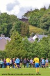The scenery certainly made up for any perceived lack of facilities, and swathes of cameras looked up and left as another train tooted as it reached Penrhyn station above. The rain just about held off, and it seemed positively quiet as the two teams slugged it out.