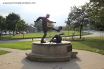 But the trophy is, in all honesty a little tucked away, so it was only fitting that a more obvious memorial be erected. The Friends of West Auckland raised £200,000 so on 12th October 2013 the 8ft (2.5m) bronze statue, which was designed by London-based artist Nigel Boonham, was unveiled by actor Tim Healy.