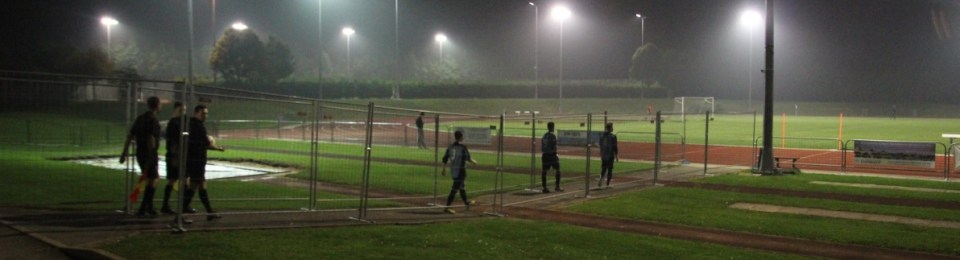 In simple terms it’s a pitch in the middle of an athletics track, so you are immediately 8 lanes from the action. The player’s tunnel is constructed from crash barriers, and there is no cover, or seating.