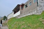 Blandy Park sits by that track bed, making use of a thin layer of level ground that’s just wide enough for a pitch. The stand sits a good 40 feet up, cut out of the rock face, with the clubhouse perched on top of it all. The changing rooms are to the side, coming from a copper roofed house, refitted by the Community Payback scheme.