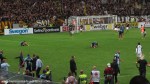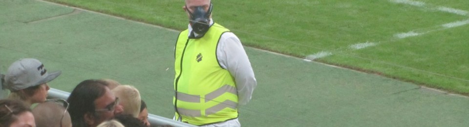 Don’t think the AIK fans were to be outdone though, their display was just before the start of the second half, and the yellow smoke delayed matters for 20 minutes! I have to say I do think issuing the stewards with gas masks was a little over-the-top though!