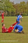 Bilborough United don’t play in Bilborough, but Basil Russell Park in Nuthall had a little cover. That was appreciated as the rains came, and although the pin badges will have to be posted out after the original stocks were lost in the post, the club hosted well. The club shifted pie and peas in quite gargantuan quantities, perhaps helped by the rain sending hoppers scurrying into the clubhouse! Again the game was poor, settled early on with Ashland keeper Adam Revuealta punching Rob England’s free kick up, but into his own net.