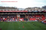 The first surprise was that the top tier of the new stand wasn’t open despite it being a local derby, and the second was that the concourse was decorated in Bristol Rugby’s memorabilia. The rugby moved to Ashton Gate in 2014, they’d lost ownership of the Memorial Ground in 1998 after an insolvency event allowed tenants Bristol Rovers to buy the ground. And for a Bristol City fan it must be rather off putting to see their local rivals’ ground plastered all over the walls of their ground!