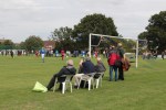 We saw a different kind of hopper here. These hoppers tended towards higher numbers of grounds visited and the very British strain of the hobby, the paper-chasers (those who target clubs doing a programme who don’t print normally) were also out in force. Some of those departed elsewhere might have looked at Moulton Harrox and regretted their decision; the cover and dugouts and rail on one side means that there are far worse grounds at Step 6. For the first half the hosts showed how they could easily cope a division higher as so often is the case at this level it’s the facilities that prevent promotion, not the players.