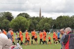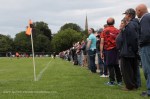 In fact the only issue was the size of the crowd, and where to put them all! The club had roped off one side but that rapidly filled up and by the time the game started the pitch ends had filled up and people had began to make use of the out-of-bounds far side. The reason for the restriction was two-fold, firstly that the area behind the fence was outside of the sportsfield and is farmland and secondly that the fence was in part being held up by wires attached to the trees- an obvious hazard.