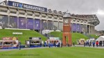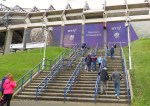 The stadium is, as you’d expect so obviously a rugby ground with the gaps between the back of the goals and the front of the stands larger than is the case at joint use grounds like Swansea City/ Ospreys. The surprise is the concourses, or rather the lack of them. The idea isn’t for the supporter to buy in the concourses and eat in their seats. Here a patch of grass has been set aside for picnics, with no end of food and drink vans to satisfy demand.