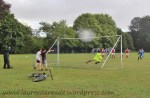 The first involved the drummer. Someone clearly too offence to his frantic beating, and intervened. She firstly took the drum from him then put her fist through the drumskin! As you can imagine that caused a certain amount of furore and I do wonder whether the players picked up on what was going on behind the goal. Eventually the young man was reunited with what was left of his drum, and rather unfairly I thought, was excorted from the premises. For my way of think, save for having absolutely no sense of rhythm he’d done nothing wrong.