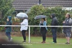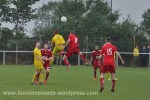 The minute’s silence was beautifully observed, as the bumper crowd found new and interesting ways to find shelter from the rain. Here the football shares with cricket in a situation slightly reminiscent of the lay-out at Thrapston so the viewing area was restricted to two-and-a-half sides of the ground. Counting the crowd was certainly an adventure!