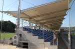 What I loved about this last game was firstly that the place was completely different from anywhere else we’d visited. There are two back-to-back stadia here, Pezë Helmës I where we were with a 1000 seat stand and the 500 seat Pezë Helmës II behind. At the end of the smaller stadium is a covered training pitch. However one common factor with every other ground we visited was that there was a bar…..