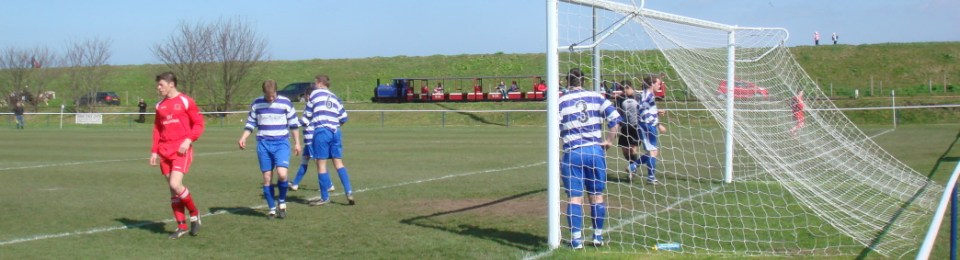 The ground lies on the land that was reclaimed below the sea wall, you may even be technically under sea-level here. Then there was the backdrop of at least 4 forms of transport, cars, the Wells Harbour Railway, boats and cyclists. It really is a lovely place to watch a game.