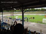 Other than the safety fences and racing track Central Park is notable for having two main stands- of a fashion. When one half of the stand was the victim of an arson attack in 1992, the undamaged half was truncated, and a new stand built on the site of the attack. Choice is almost always a good thing but here for us there really wasn’t any- we made a beeline for the Annan fans in the old stand.