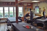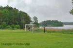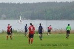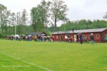 Now normally rain ruins a host club’s plans but here it might actually have helped friendly Roslagskulla. They’d set up a barbecue and bar under a gazebo and once we’d finished enjoying the fact that the barbecue was fashioned from an old sink unit with the plug acting to filter out the ash. But a bar and some cover with a view of the pitch proved popular- with half an eye on the day’s final game at Vaxholm.