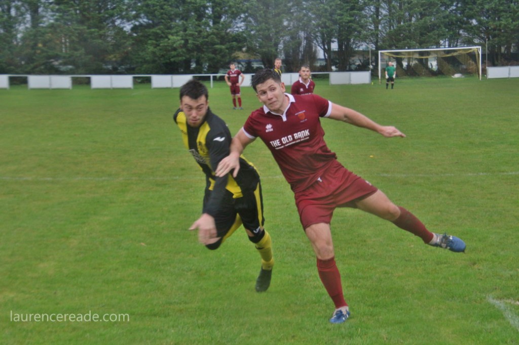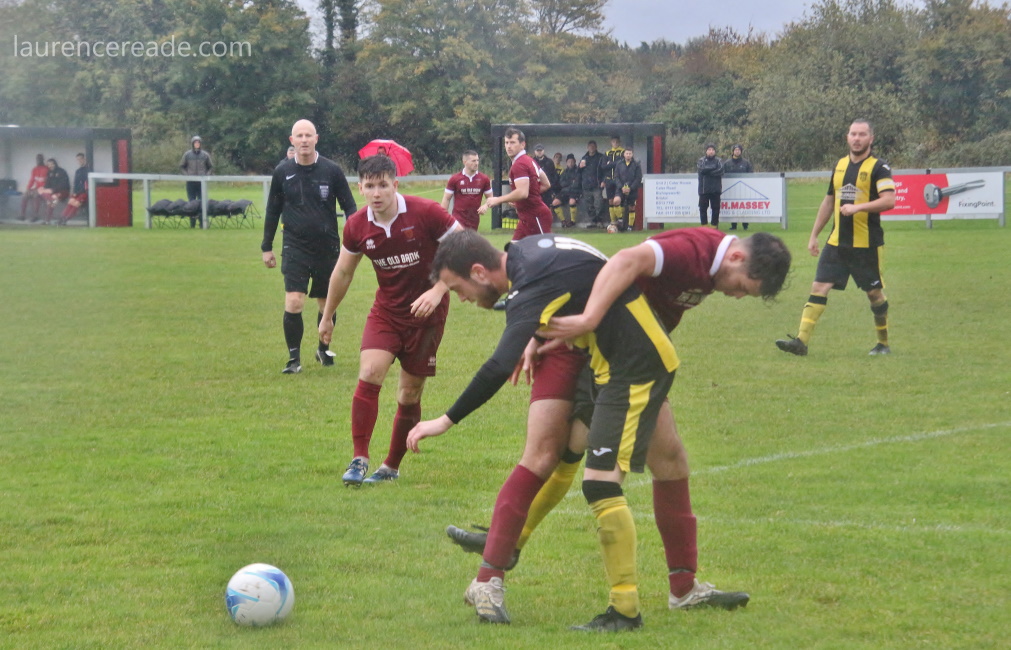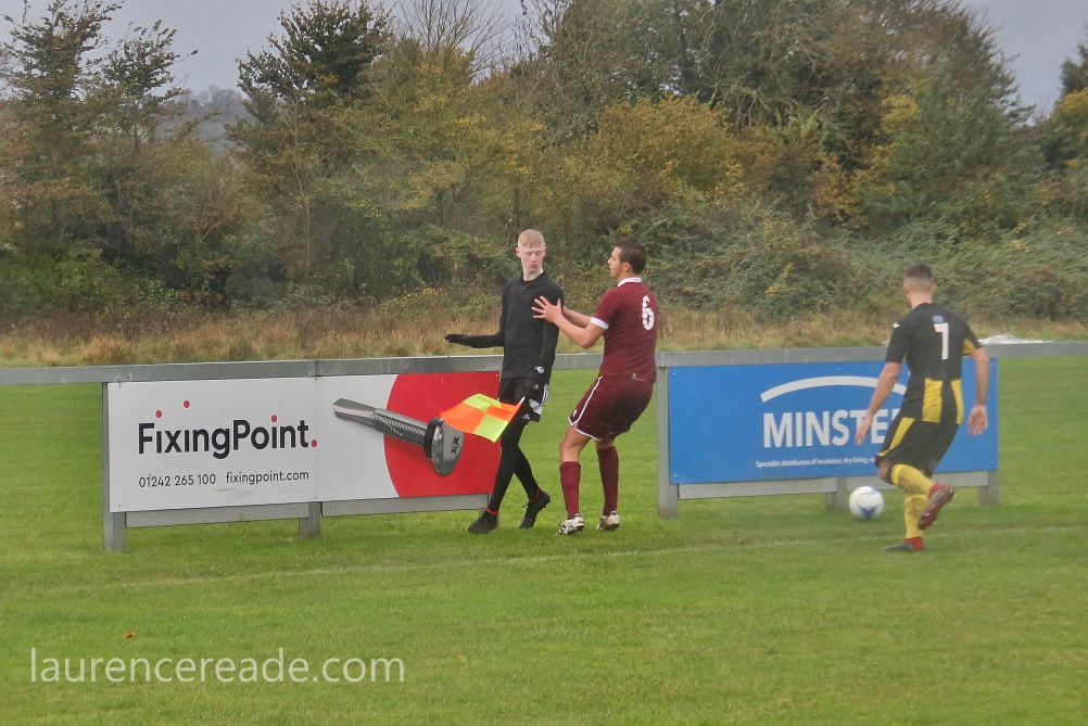 Nothing much of note happened in a turgid first half, the rain didn’t help as the players squelched in stalemate in the middle third. As the weather briefly relented Blake Longden set up Conrad Britton for a well-taken opening goal. That advantage didn’t last long as Luke Banfield fired home for Keynsham soon afterwards.