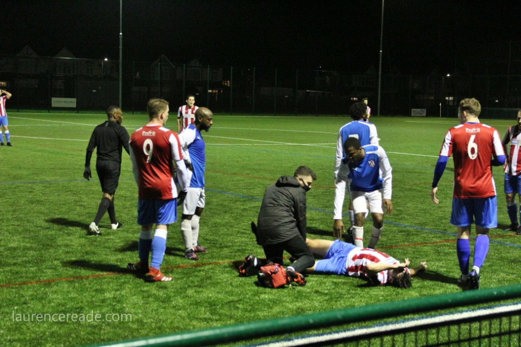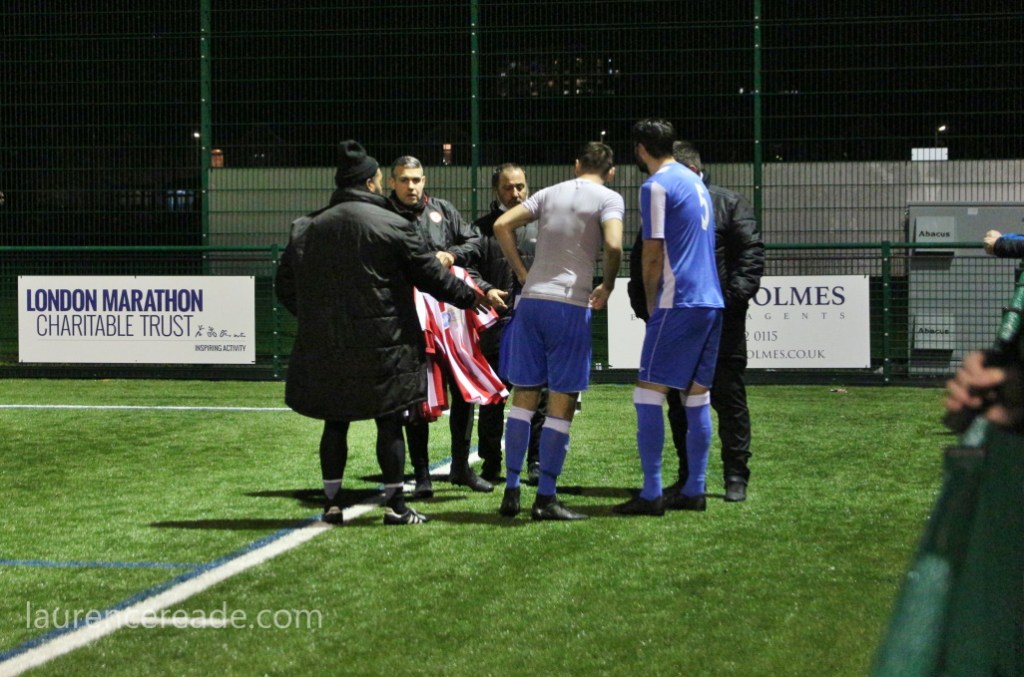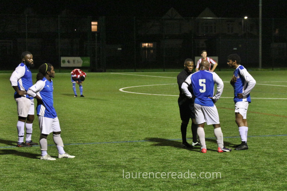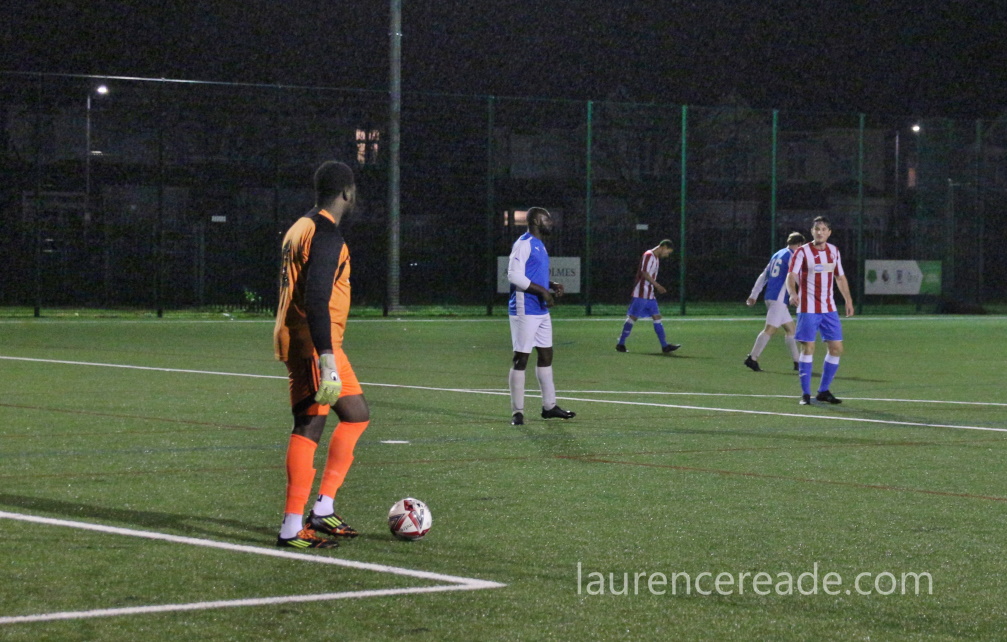 I’m not sure why Frenford opted to turn out in blue and white, their normal kit is red and white stripes. It wouldn’t have been an issue, but AFC Newham turned up in.. blue and white too! It was fortunate that Frenford were able to find different shirts and quickly!