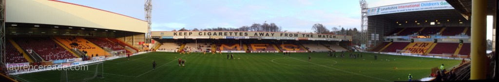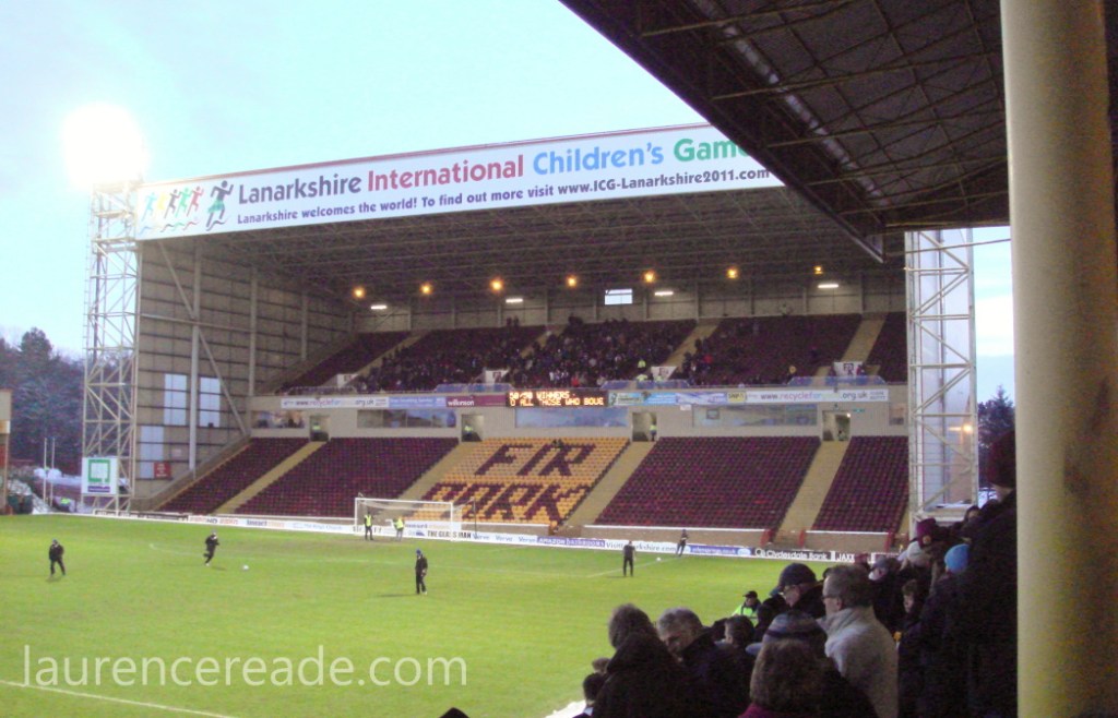 The two tier South Stand does dominate the ground, its the stand you can just about see from the M74. Like other grounds with a realistic chance of hosting top flight football its built the size that it is, 4,856 seats, to accommodate the huge travelling supports of Celtic and Rangers. To give you an idea of just how much influence the Auld Firm has on the design of Scottish stadia, Motherwell offered £20 debentures to help finance the stand, with the holder guaranteed a seat for the fixture of their choice. 600 were bought, in the most part by Rangers fans guaranteeing their place twice a season!