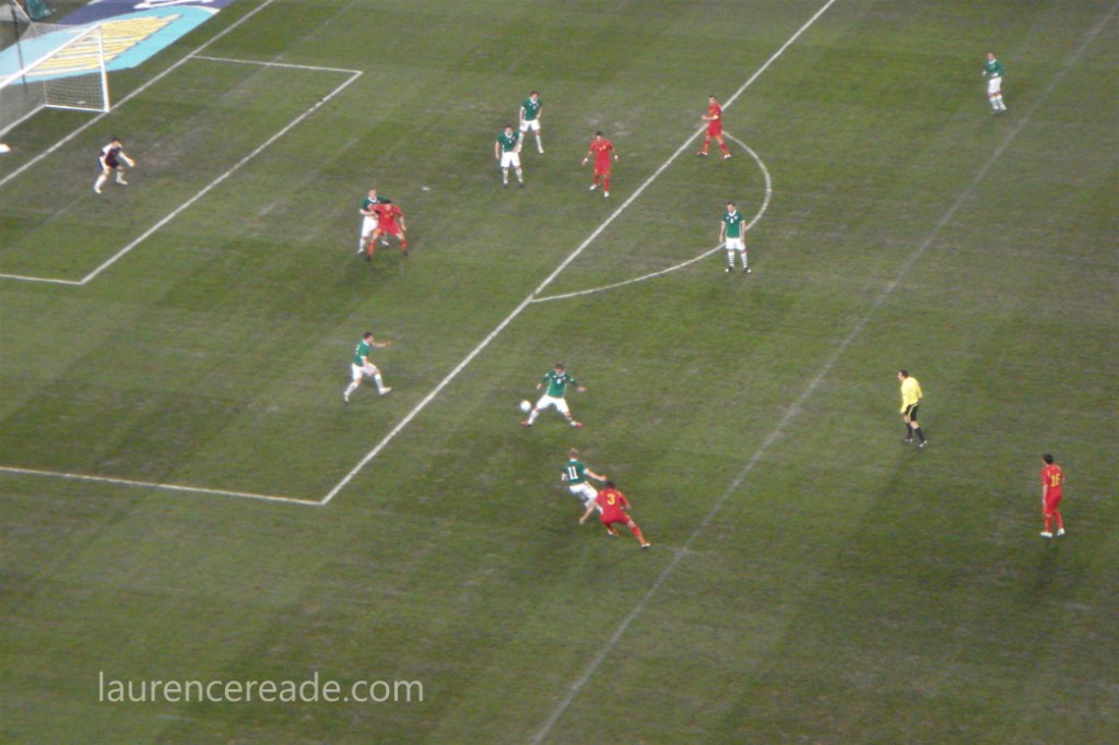 That was down to the marketing wizards at the FAI who decided to only sell tickets to this game bundled up with a ticket for a friendly with Uruguay the next Tuesday. That bundle cost €70 – a lot when we weren’t going to be in the country to make use of the second ticket! Eventually the FAI relented, perhaps when they saw the level of ticket sales which put us in the weird position of finding out that two ticket vans would be parked either side of the stadium in of all places, Northern Ireland!