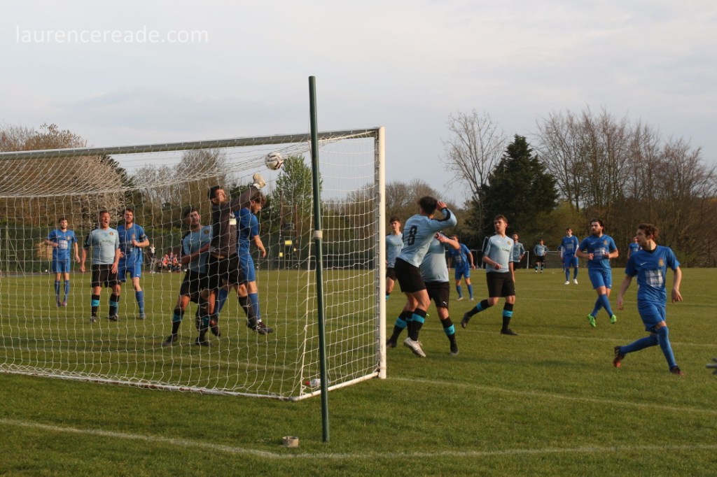 I think most watchers of the North Berkshire League expected Berinsfield to be somewhere in the mix, Saxton will regard the season as disappointment, Childrey’s challenge faltered, but Hagbourne’s challenge surprised me. Their firsts have moved into a groundshare at Didcot Town and clearly have made it work for them. They went into this game second, needing to win this game to force a virtual shoot-out for the title at Didcot on the Saturday.