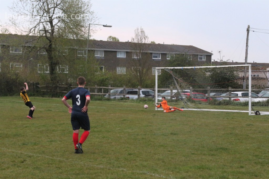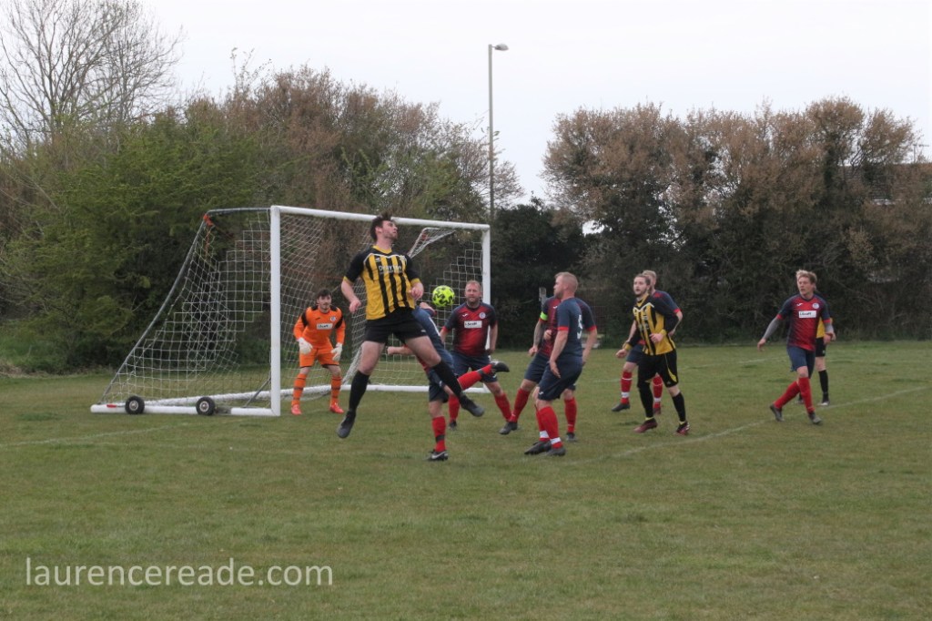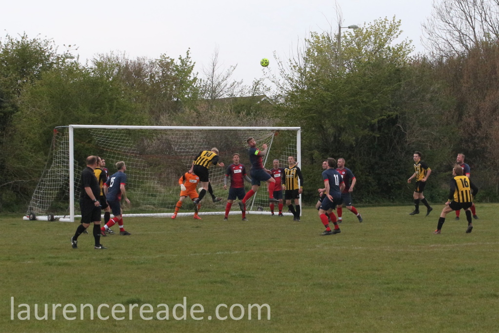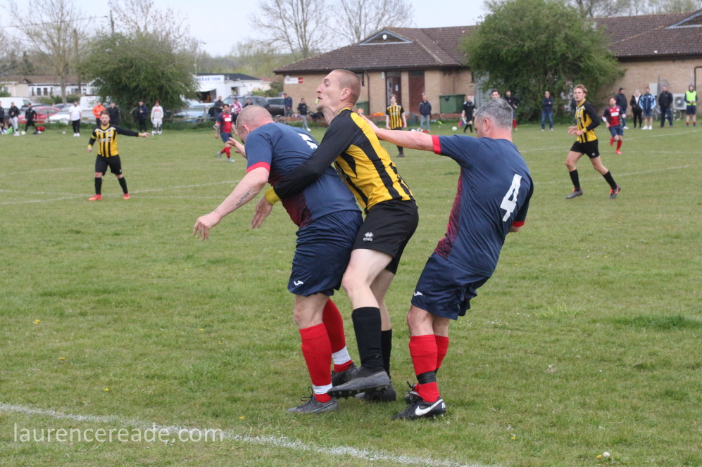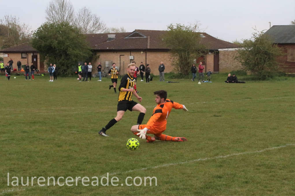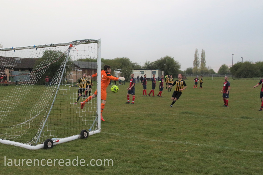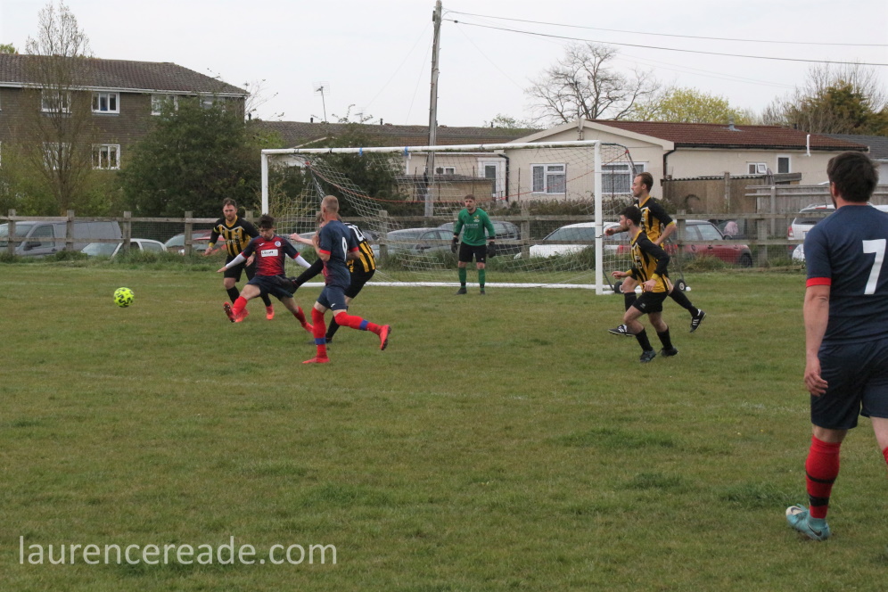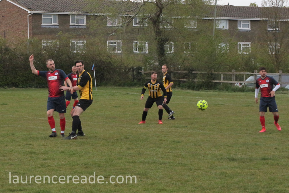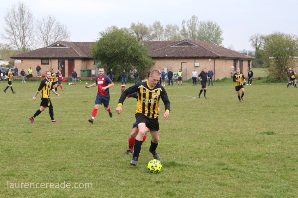It is a municipal facility so there was no Steve Mulford to produce a pristine pitch, and the result was a surface that both sides did well to produce an entertaining game on. There was little more than pride to play for both sides will no doubt look to place next season in the NBFL’s top flight next season. It was good to see a contingent from East Hendred there; plenty of the team live in Grove so being here was convenient, or was that because Steve Mulford had asked the team to come into spread a ton of topsoil on the pitch?