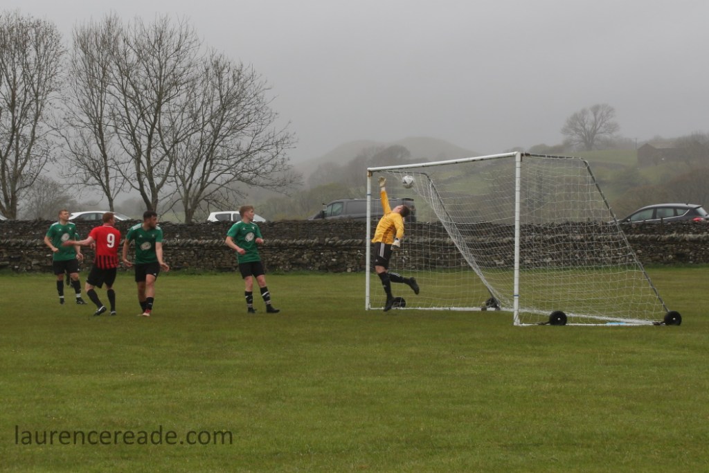 To the uninitiated I normally explain the Westmorland League as being the local league for the Lake District, and I suppose the area is where the Lakes meets the Yorkshire Dales, you do pass by Lilymere lake on the way here from the M6. The feel in Dent is more James Heriot than the Lakes, though. Those of us old enough to remember “All Creatures Great & Small” on Sunday evening television will get the idea, if you imagine the titles with Christopher Timothy driving the little van through a ford with the hills as a backdrop. Mind you most of the TV series was filmed in Askrigg- around 20 miles east.