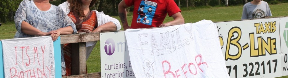 Then there was the the tale of Kevin Shaddick’s mother. This is I expect the first time her son’s football match has clashed with her birthday and probably the last time too! So there she was, with her family staging a tongue-in-cheek protest complete with “Family Before Football” banner. It caught the end of season tone perfectly, and as Barnstaple cruised to an easy win and an unbeaten season I spotted a table being set up pitch side.